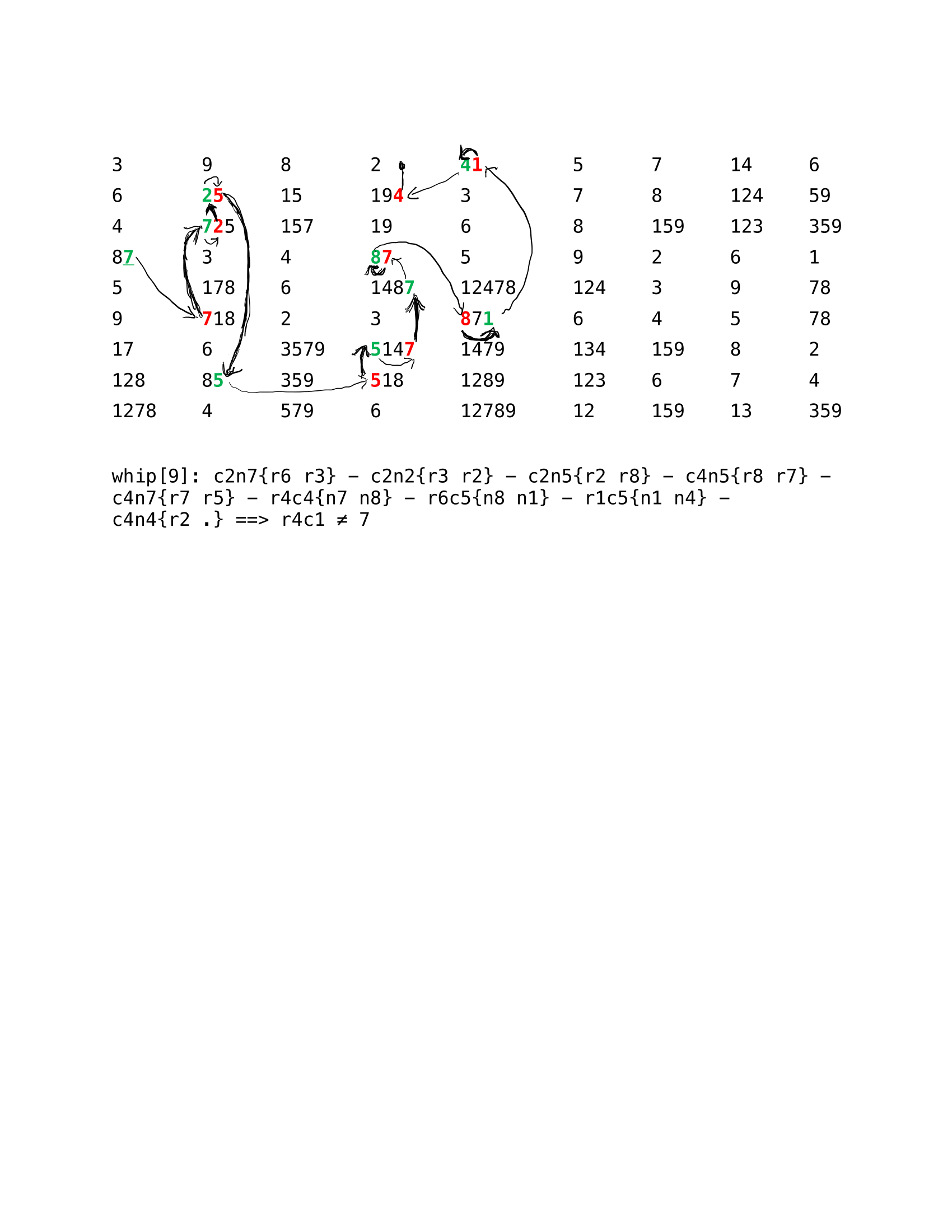 creint wrote:Why are other false points shown? With more abstraction you only need true points in the right order and you can construct the logic. For example: 7r4c1 - c2n7{r3} - c2n2{r2} - c2n5{r8}.